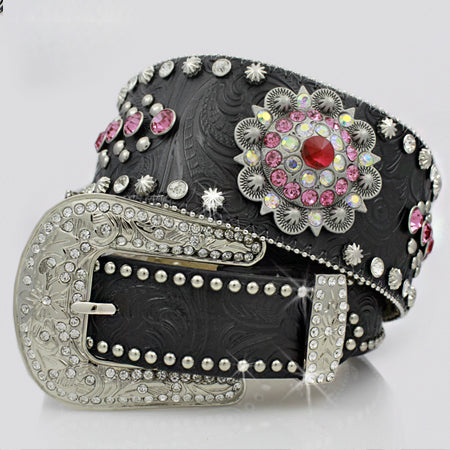 *FULL GENUINE CRYSTAL STUDDED GLASS ORNAMENTS SMALL AND LARGE ALL ALONG BELT STRAP