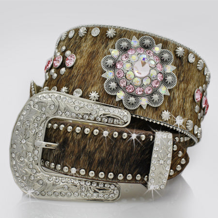 *FULL GENUINE CRYSTAL STUDDED GLASS ORNAMENTS SMALL AND LARGE ALL ALONG BELT STRAP