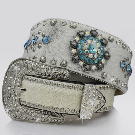 *FULL GENUINE CRYSTAL STUDDED GLASS ORNAMENTS SMALL AND LARGE ALL ALONG BELT STRAP
