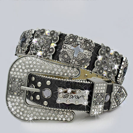 * ALL GLASS CRYSTAL STUDDED BELT STRAP