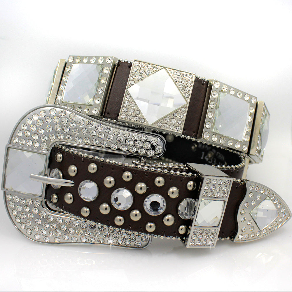 * ALL RHINESTONES AND STUDS ON BELT STRAPS ARE RIVETED / COVERED ON THE BACK.