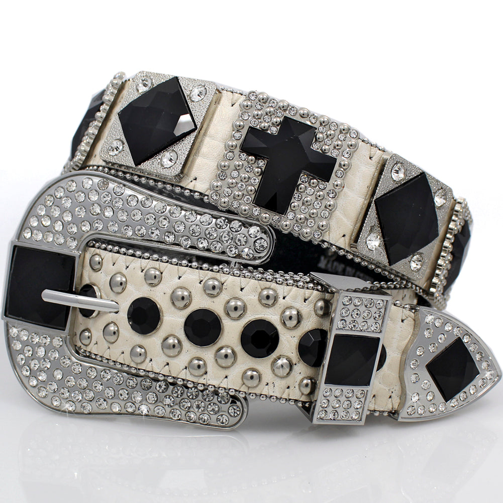 * ALL RHINESTONES AND STUDS ON BELT STRAPS ARE RIVETED / COVERED ON THE BACK.