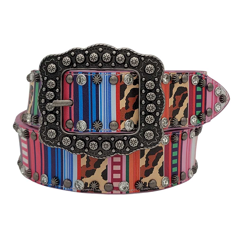* Top and botton of belt strap decorated with rhinestone and studs