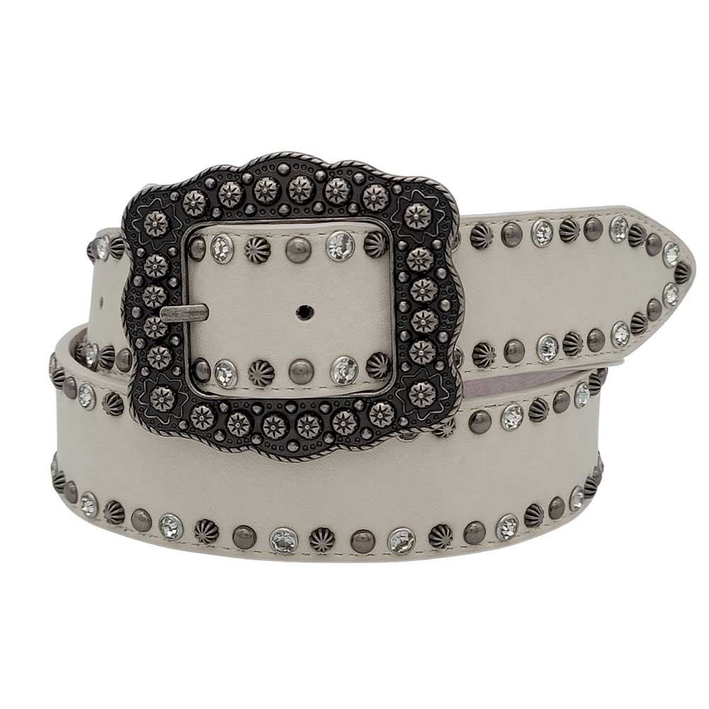 * Top and botton of belt strap decorated with rhinestone and studs