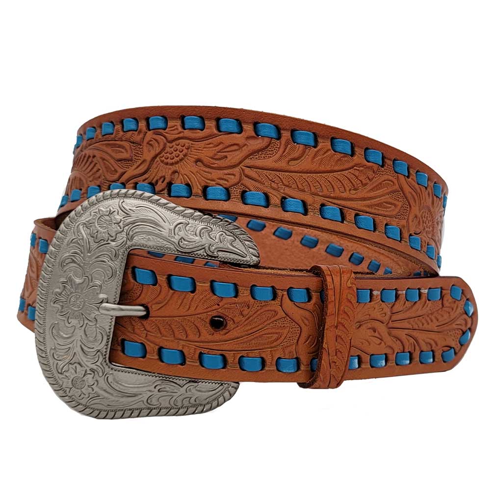 * BHW® Brand one piece genuine leather embossed tooled belts