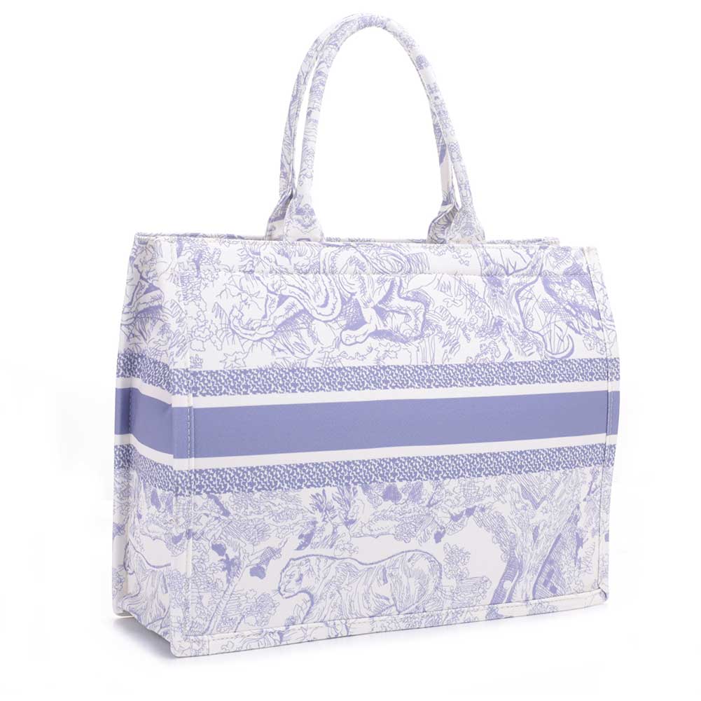 * Soft canvas print designer inspired bag * Top zip closure * Runway style