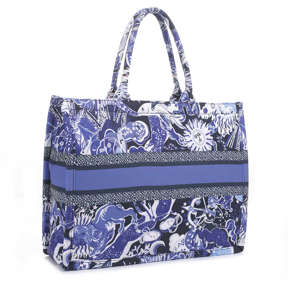 * Soft canvas print designer inspired bag * Top zip closure * Runway style