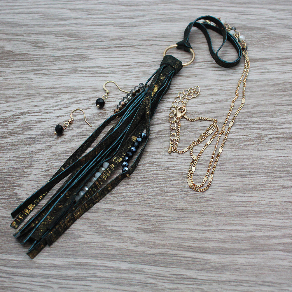 MNE6442-BLACK-LEATHER-FRINGE-2PC-SET