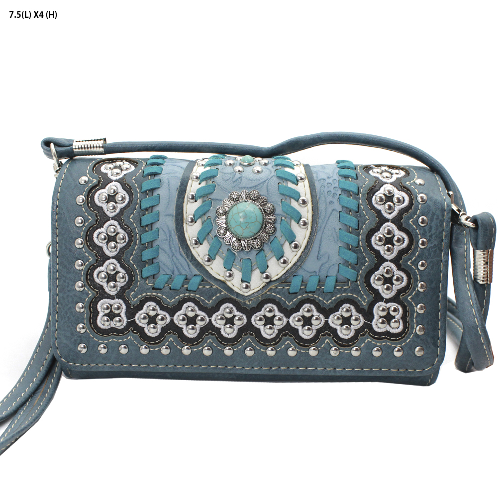 G939-W203-BLUE WESTERN RHINESTONE HANDBAGS CONCEALED CARRY PURSES